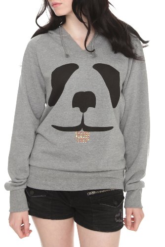 This heather grey french terry pullover hoodie features a drawstring V-neck hood, a front screen panda face and a pink sequin tongue.Available at Amazon Check Price Now!